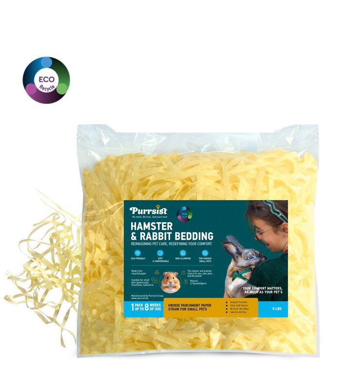 Hamster & Rabbit Bedding Reimagining pet care, redefining your comfort. Keep small habitats dry and comfortable. Ideal for small pets. Made from mica (silicone-coated) paper.